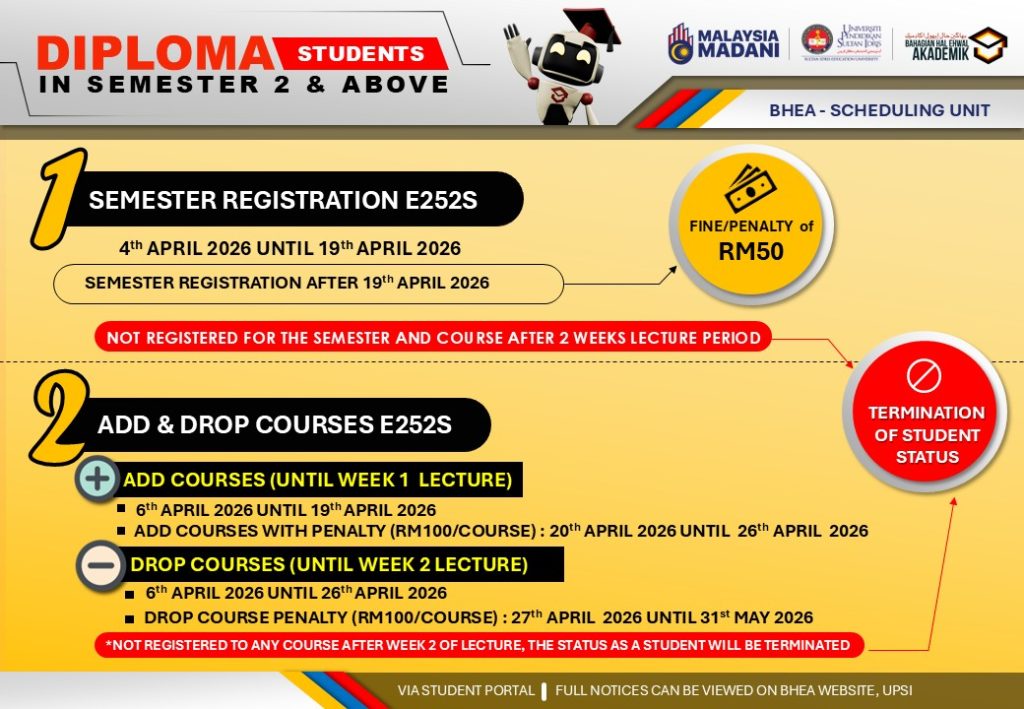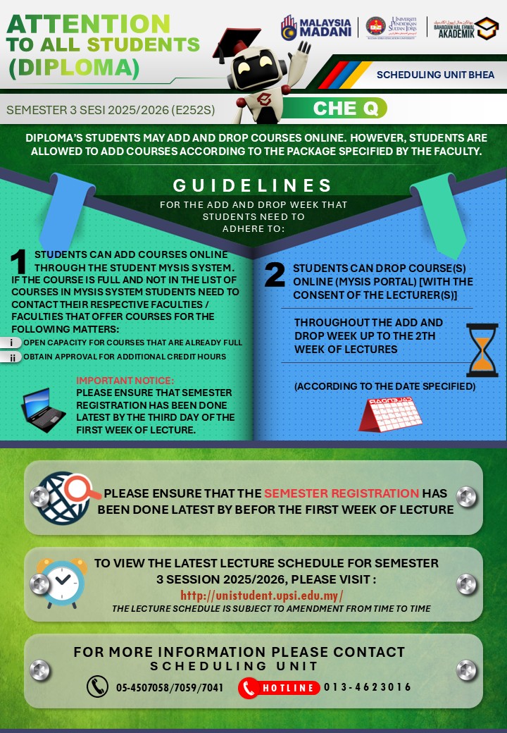 SEMESTER REGISTRATION & ADD DROP COURSE FOR DIPLOMA SEMESTER 3 SESSION 2025/2026 (E252S)
