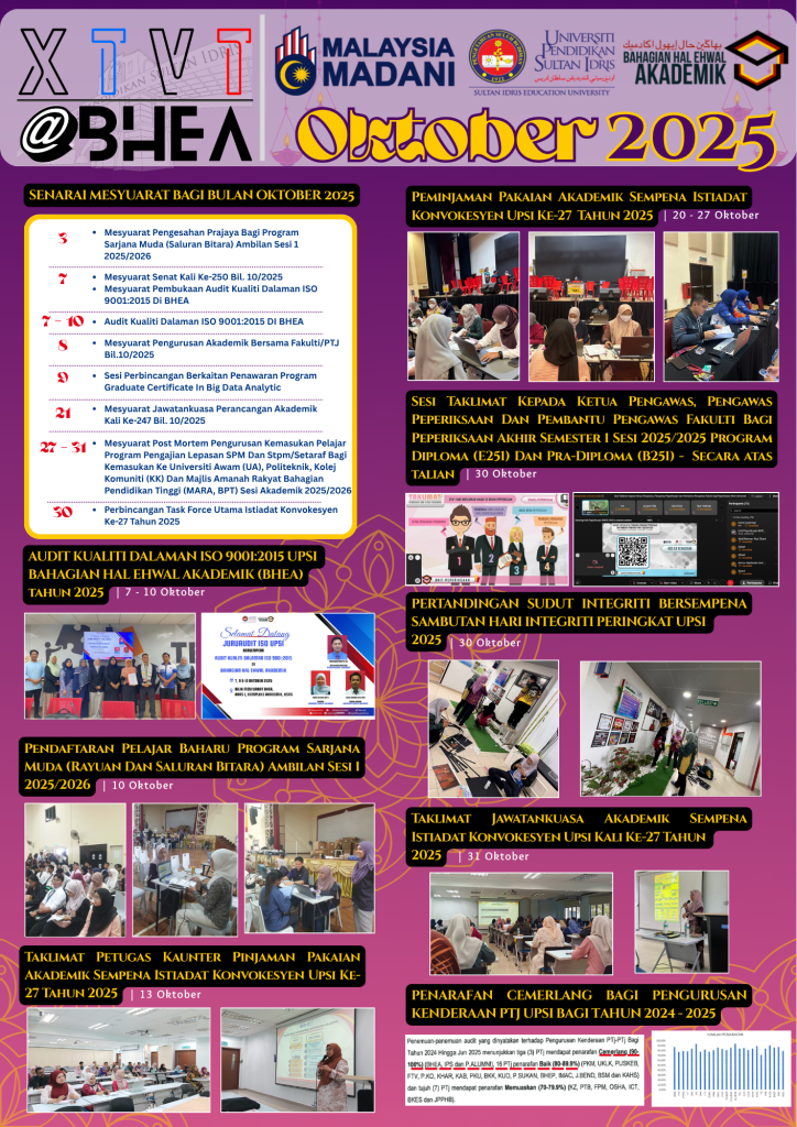 UPSI | Bahagian Hal Ehwal Akademik, 35900 Tanjong Malim, Perak Darul Ridzuan akademik@upsi.edu.my Hotline BHEA : +6013-415 3016 (Kemasukan) / +6013-446 3016 (Pengijazahan & Peperiksaan)) / +6013-462 3016 (Penjadualan)